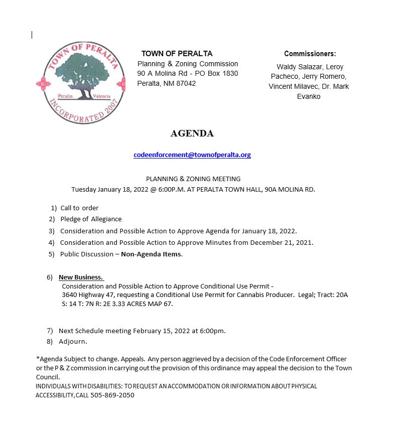 P & Z Agenda 01/18/2022