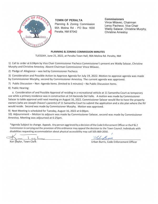 P&Z Minutes 6/21/22